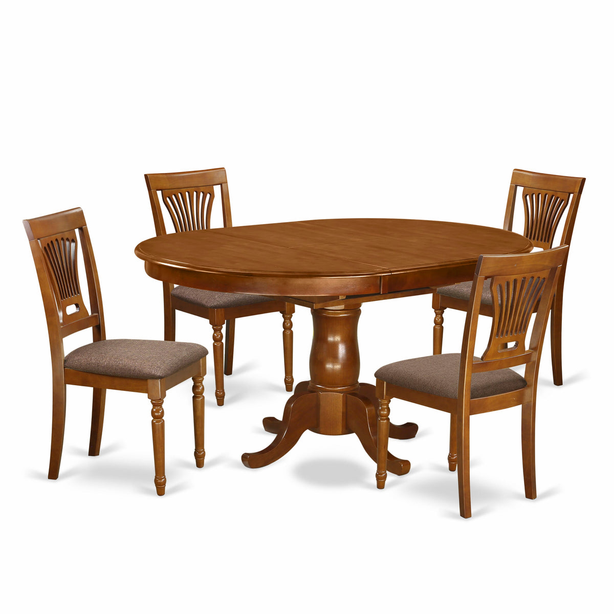 POPL5-X58 Charming Oval Dining Ensemble with Leaf Extension and Upholstered Chairs for Four, Saddle Brown