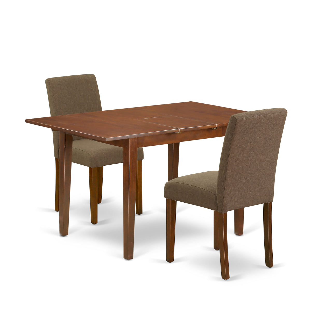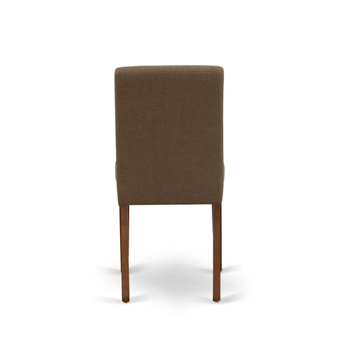 This superb dining set features a Mahogany color that enhances a number of various attractive themes. The smooth color of this kitchen table subtly demonstrates light to brighten up the living area and showcase the dining room tables, and kitchen dining Chairs. The extendable leaf can be easily expanded making dining space for personal occasions or great parties. A single bevel edge and a rounded finish provide this dining room table fits into a small kitchen space, Great for compact apartments. No heat treated pressured wood like MDF, particle board or veneer top was fabricated. This simple but charming parson chair will add ambiance and style to your dining room. A contemporary twist on a classic design, this eye-catching design will liven up any look. The traditional parson gives this chair a touch of familiar charm, while the linen fabric-coffee color and clean-lined design elevate this chair with a modern flair. The frame of the Dinette chairs is engineered to offer a great amount of comfort to your spine and thus reduce the chances of back pain. Straight legs give this design a hint of well-worn style, while its arched silhouette and nail head trim round out the look with classic character. Just by switching out your old dining set with this one, you can effortlessly refresh your dining space. This comfortable dining set can be a good choice for a great dining experience with family and friends.