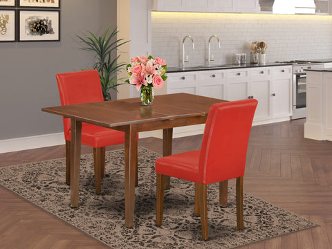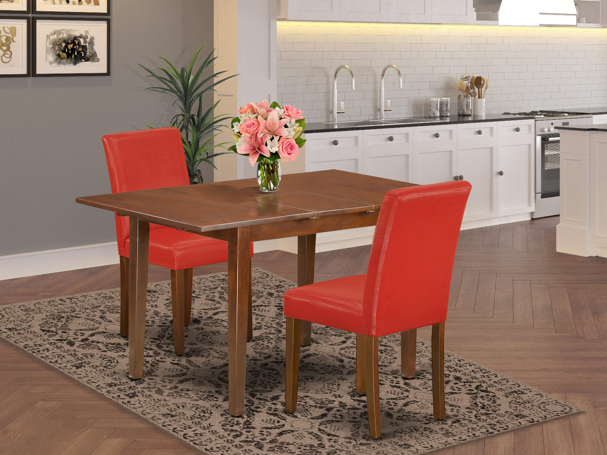 This superb dining set features a Mahogany color that enhances a number of various attractive themes. The smooth color of this kitchen table subtly demonstrates light to brighten up the living area and showcase the dining room tables, and kitchen dining Chairs. The extendable leaf can be easily expanded making dining space for personal occasions or great parties. A single bevel edge and a rounded finish provide this dining room table fits into a small kitchen space, Great for compact apartments. No heat treated pressured wood like MDF, particle board or veneer top was fabricated. This simple but charming parson chair will add ambiance and style to your dining room. A contemporary twist on a classic design, this eye-catching design will liven up any look. The traditional parson gives this chair a touch of familiar charm, while the PU leather-firebrick red color and clean-lined design elevate this chair with a modern flair. The frame of the Dinette chairs is engineered to offer a great amount of comfort to your spine and thus reduce the chances of back pain. Straight legs give this design a hint of well-worn style, while its arched silhouette and nail head trim round out the look with classic character. Just by switching out your old dining set with this one, you can effortlessly refresh your dining space. This durable and comfortable dining set can be a good choice for a great dining experience with family or friends.