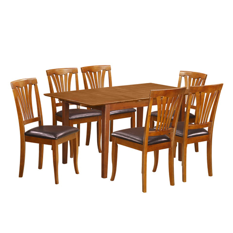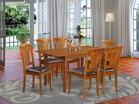 PSAV7-UHB-VC Dining Set 7-Piece Package with Extendable Table and Synthetic Leather Chairs, 32x60 Inch, Warm Saddle Tone