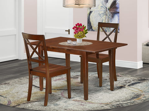 This superb dining set features a Mahogany color that enhances a number of various attractive themes. The smooth color of this kitchen table subtly demonstrates light to brighten up the living area and showcase the dining room tables, kitchen dining Chairs. The extendable leaf can be easily expanded making dining space for personal occasions or great parties. A single bevel edge and a rounded finish provide this dining room table fits into small kitchen space, Great for compact apartments. No heat treated pressured wood like MDF, particle board or veneer top was fabricated. Slender x back Dinette chairs present trendy and comfy Seating, with wood seats finished in a smooth Mahogany color which let you enjoy a nice and trendy dining experience. Made up of hardwood, the wooden chair is stable and offers a sturdy finish. The dining chairs add elegance and class to any place you have placed them. The frame of the dining chairs are engineered to offer a great amount of comfort to your spine and thus reduce the chances of back pain. The matching color of the chair with the table brings a good contrast in the kitchen area. The standard shape, size and design make the dining area significantly attractive. This contemporary, budget friendly, Durable and comfortable dining set can be a good choice if you are looking for a great dining time experience with family and friends.