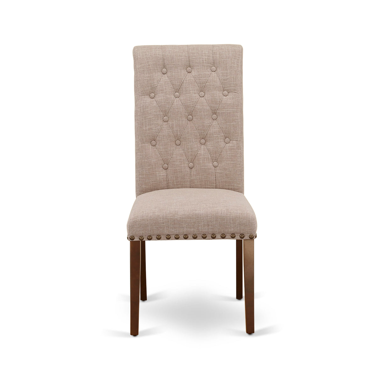 To enrich the appearance of your dining room, bring this superb dining set that blends well with a number of various attractive themes. The smooth Mahogany color of the rectangular kitchen Table subtly demonstrates light to brighten up the living area. The extendable leaf can be easily expanded making dining space for personal occasions or great parties. Made up of rubber wood, the dining table offers maximum support, stability and fits into small kitchen space, Great for compact apartments. No heat treated pressured wood like MDF, particle board or veneer top was fabricated. This sturdy wooden table based on 4 legs with a simple design has plenty of space for 4-6 people to sit and enjoy their meal comfortably. A regal and affordable parson chair offers a touch of beauty to any dining room and provides sensible seating arrangements. The upholstered parson chair features a beautiful stitched exterior. Tall back, linen fabric, high-density foam padding, solid hardwood frame construction, comfortable, durable and attractive. Whether you use this dining chair is an easy to assemble and stylish answer to your seating needs. The standard shape, size and design make the dining area significantly attractive. This contemporary, budget friendly, Durable and comfortable dining set can be a good choice if you are looking for a great dining time experience with your family or friends.