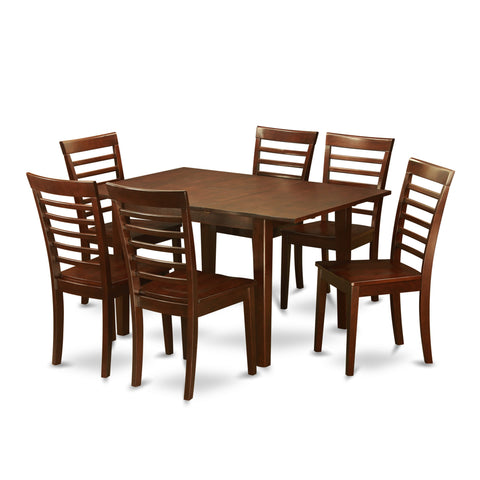 PSML7-WQE-O 7-Piece Dining Ensemble Rectangular Table with Butterfly Leaf & 6 Chairs, 32x60 Mahogany