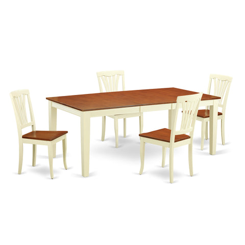 QUAV5-2JP-B Elegant 5-Piece Dining Set with Butterfly Leaf Table & 4 Chairs, Buttermilk & Cherry Finish, 40x78 In