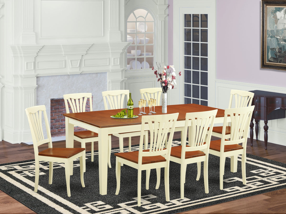 QUAV9-WHI-W 9-Piece Rectangular Dining Set with Expanding Table & 8 Chairs in Buttermilk & Cherry Elegance