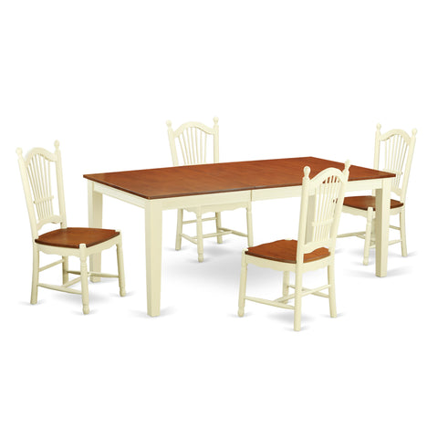 QUDO5-YCZ-J 5-Piece Dining Ensemble with Extendable Rectangle Table & 4 Chairs, Buttermilk Cherry Finish