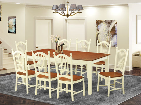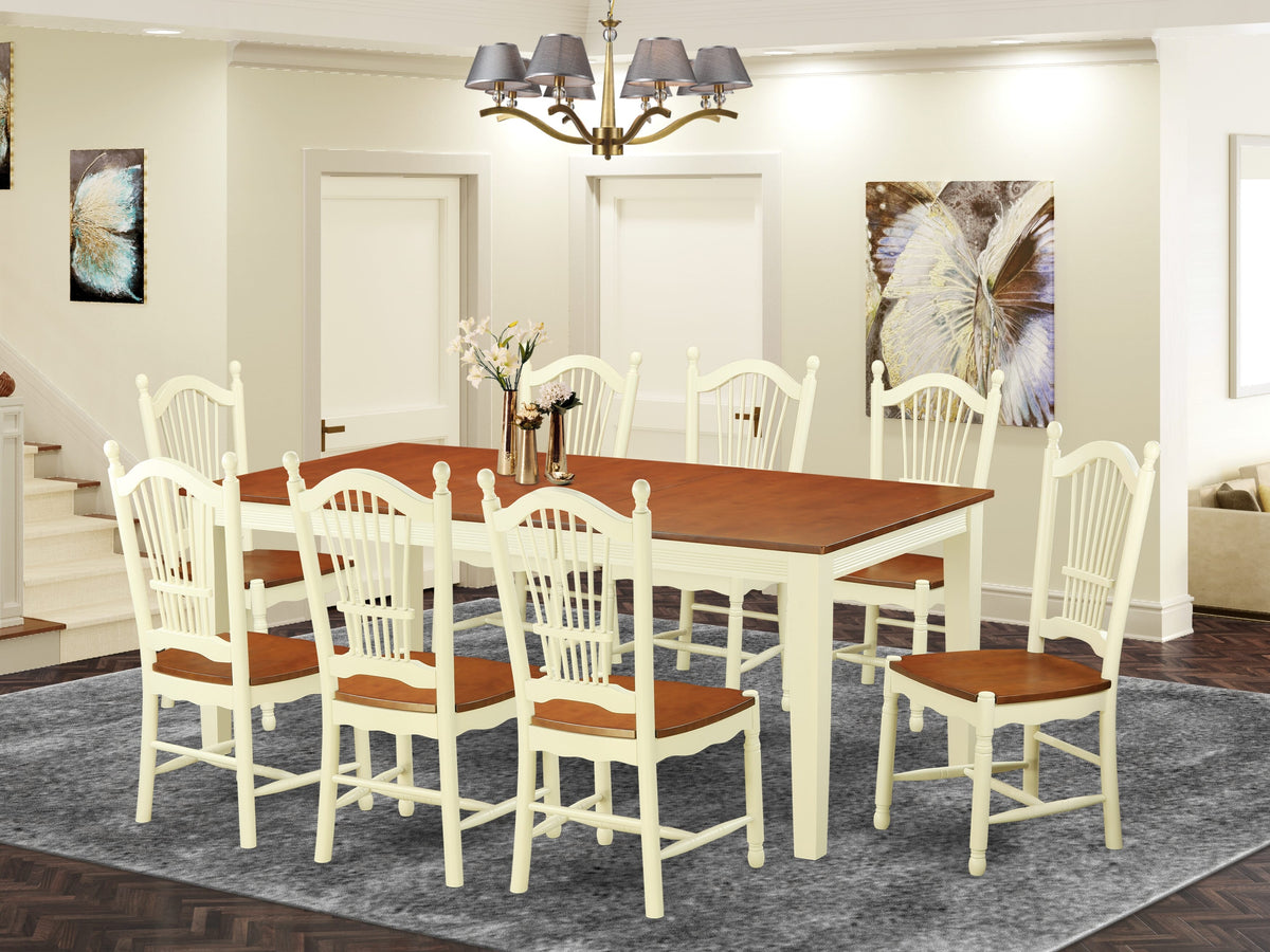 QUDO9-C47-3 9-Piece Set Spacious Kitchen Dining Table with Extension Leaf and 8 Stylish Chairs, Buttermilk & Cherry