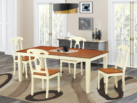 QUKE5-J3B-W - 5-Piece Dining Room Set with Rectangular Butterfly Leaf Table and 4 Chairs - Buttermilk and Cherry Finish Elegance