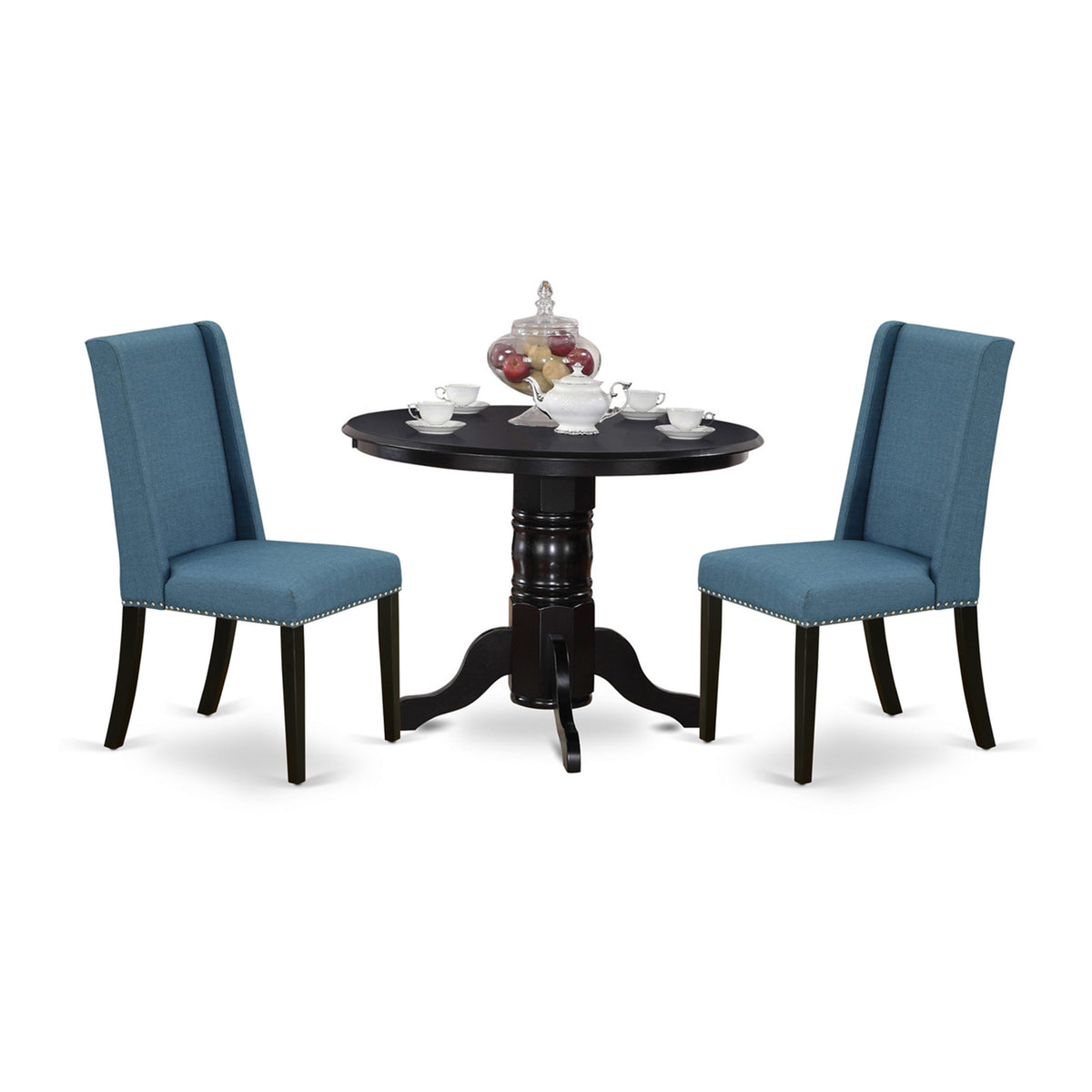 SHFL3-LKH-I8 3-Piece Elegant Dining Set Round Table with Pedestal Base & 2 Navy Blue Fabric Chairs, 42x42
