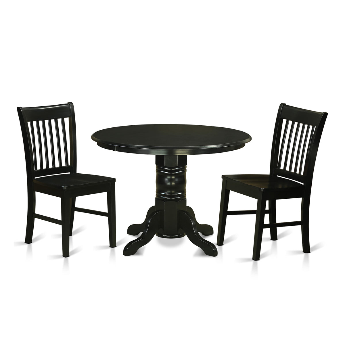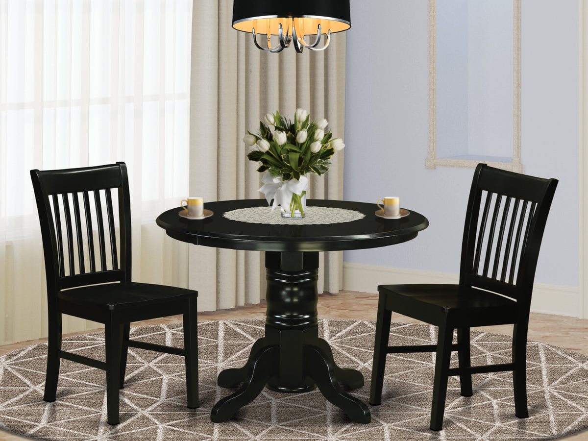 SHNO3-1KH-6 Elegant 3-Piece Black Dining Room Set Round Table with Pedestal & Two Chairs, 42