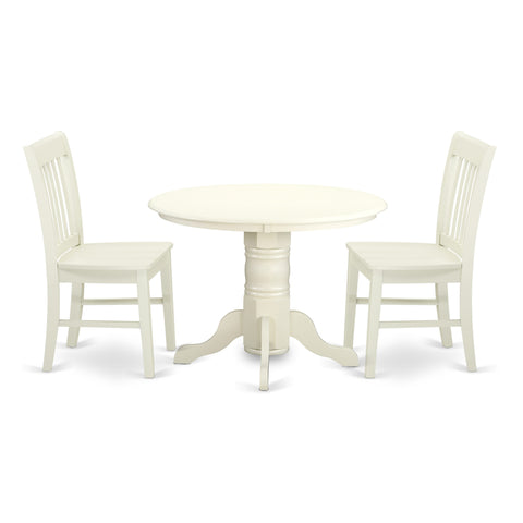 Dining Set SHNO3-KQC-Q Round Pedestal Table & 2 Chairs in Modern Linen Finish, 42-Inch