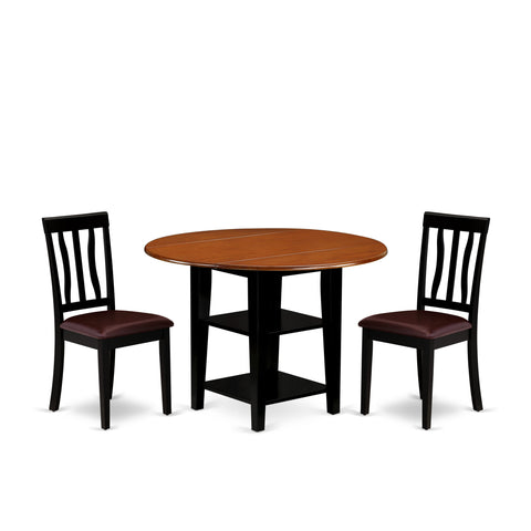 Refined Dining Ensemble SUAN3-PVD-ZV - Stylish 3-Piece Set with Dropleaf Table and Cozy Seating