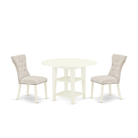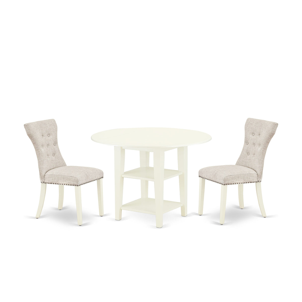 SUGA3-91S-4G 3-Piece Round Dining Set with Drop-leaf Table and 2 Linen Seats for Cozy Nooks, 42 Linen White