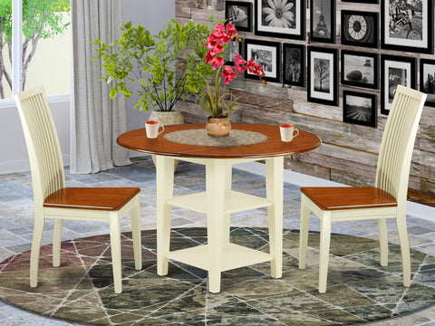 SUIP3-Y28-3 3-Piece Dining Set With Dropleaf Table & Chairs, Perfect For Cozy Kitchens In Buttermilk and Cherry