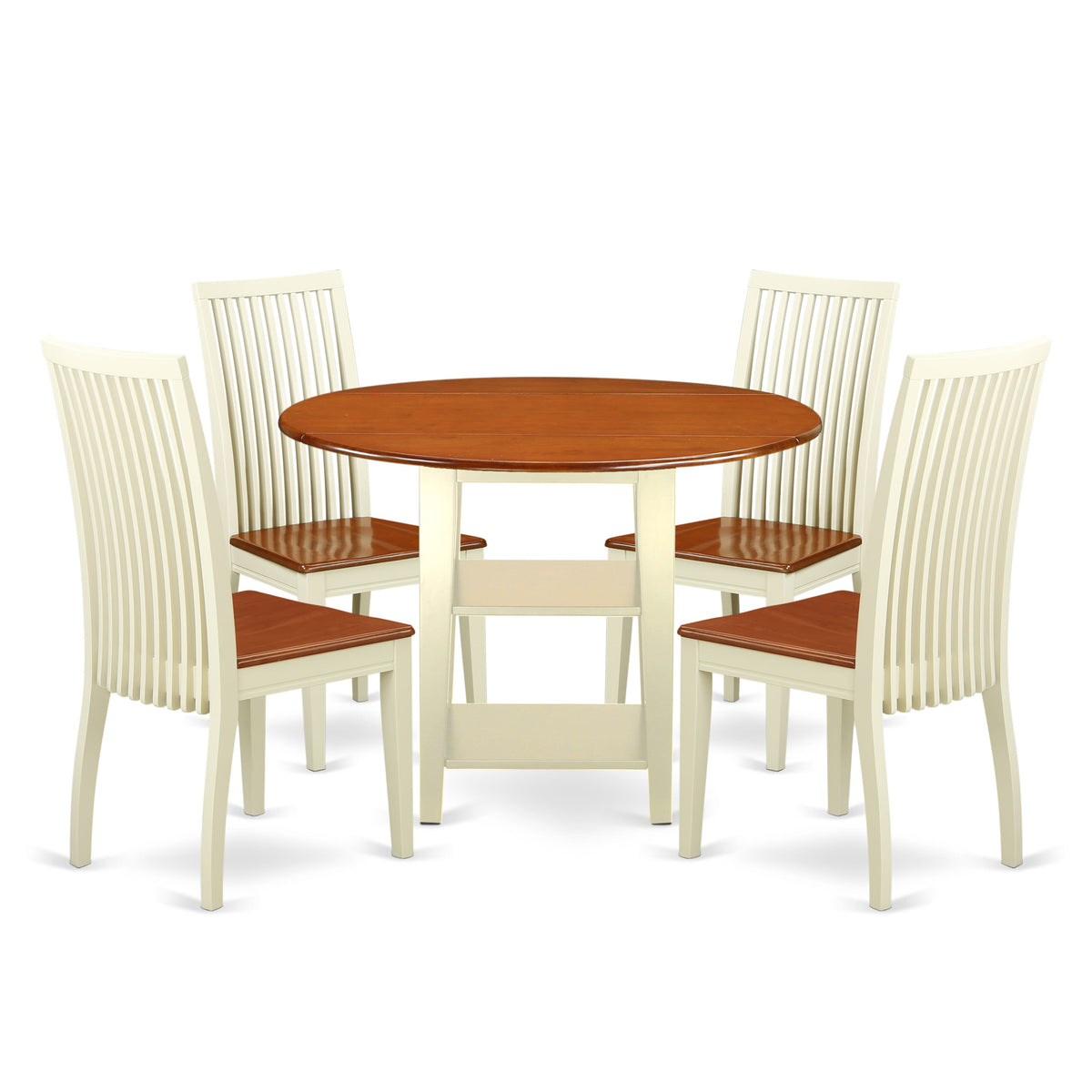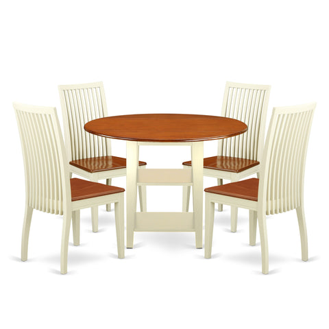 SUIP5-I Set 5-Piece Round Dropleaf & Storage Dining Table with 4 Wooden Chairs, 42” Buttermilk/Cherry