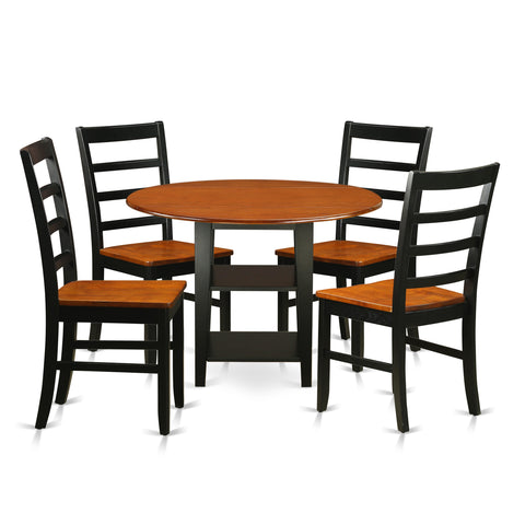 SUPF5-BXY-K, Sophisticated 5-Piece Dining Ensemble with Round Dropleaf Table & Chair Set, Black Cherry Fusion