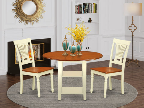 SUPL3-5UJ-S Chic 3-Piece Round Dining Set with Dropleaf Table, Shelves, & 2 Wood Chairs, 42x42 Inch