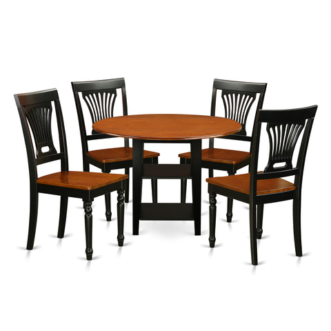 SUPL5-SU6-J 5-Piece Round Dining Set with Shelves & Chairs, 42 Black & Cherry Table