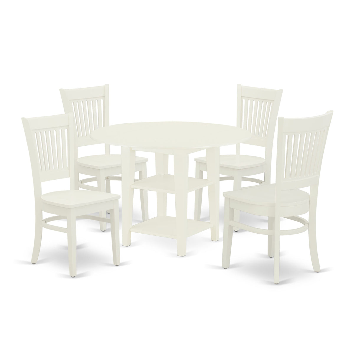 Its wood dinette set includes 4 desirable wooden dining chairs and an awesome 4 legs round table. The dinette set gives a Linen White solid wood dining room table and a fantastic Linen White wood dining chair that will enhance the attractiveness of your dining room. This wood dining room table is manufactured from high-quality rubberwood. These dining chairs have been created from superior quality wood that can Endurance to 300lbs weight. This modern dining table set is colored with a top-quality Linen White finish. You can clean this wood dinette set easily with any furniture clearance. This kitchen table set assembles simply because of its simple design. You can put together this kitchen dinette set from one place to another easily. The dining set is one of the most important pieces of furniture in your house. It not only becomes the place to eat meals, but it's where you end up working on vegetable cut and spending time with family and friends. You can also use it for casual home parties. That's why it's important to find a kitchen set that fits your personality and uses the space correctly. The options are endless, so picking what works best for you is important. If you're looking to bring a contemporary look to your kitchen or dining room, this round dinette set might be the best selection. Bring a rustic, fashionable look to your dining area with this mid century dining table set that seat 4 people around the rectangle dining table. Just because you have a small area or your wood dining room table doesn't mean you have to sacrifice quality or look. Keep enjoying with East West furniture!