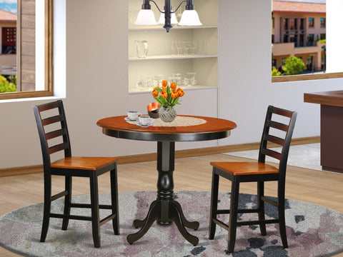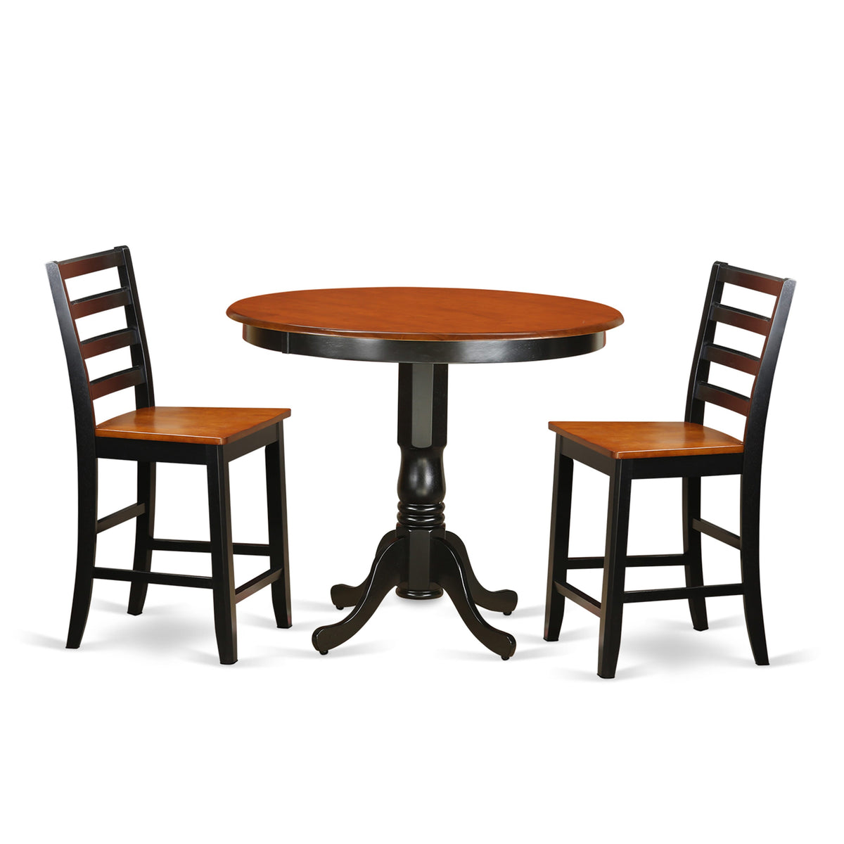 TRFA3-RXZ-K Compact 3-Piece Dining Set with Round Table & Two Wooden Chairs, Black & Cherry