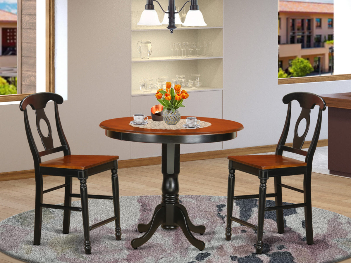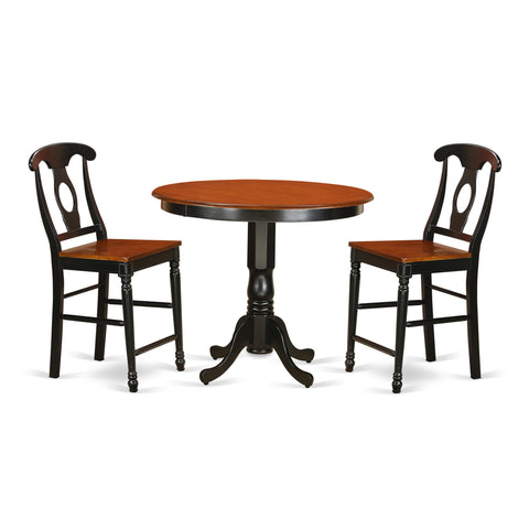 TRKE3-6TF-L 3-Piece Round Counter Dining Set with Black & Cherry Table and 2 Chairs, 42