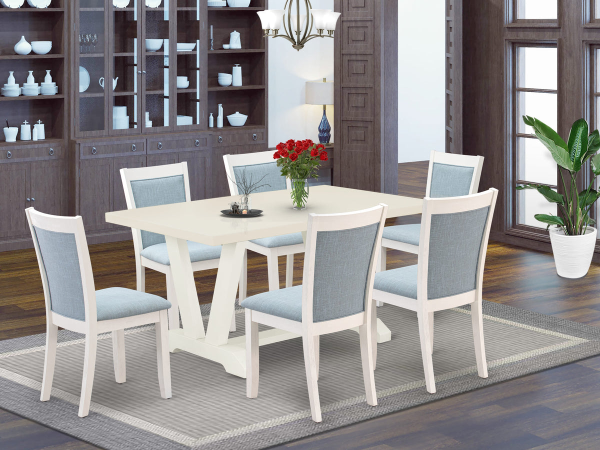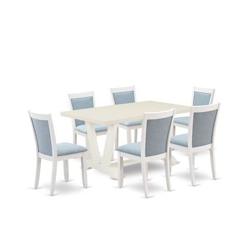 V026M4M7K-O Dining Set with Rectangular Table and Baby Blue Chairs, 7 Piece, 36x60 Inches, Multi-Color Elegance