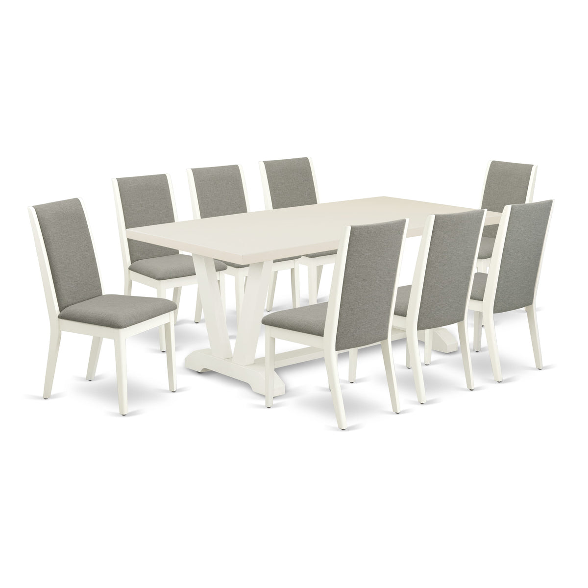This dinette set includes 8 amazing dining room chairs and an amazing modern dining table. This kitchen table is offered in an elegant Off-White finish. In addition, the dining chairs in a Shitake linen fabric enhance the elegance of any kitchen or dining area. Our kitchen table set provides great durability because this modern dining table is built from high quality Asian Wood which can bear the weight of 300 Lbs. We have created these kitchen parson chairs and dining table with the help of highly experienced carpenters, who generate a smooth and high-end finish to this dinette set. We try to offer innovative as well as easy to assemble products. Our high-quality rectangular table set is perfect for you and your beautiful dining room as well as the kitchen area. You can use it for casual home parties or intimate gatherings. Keep Enjoying East West modern furniture!