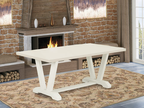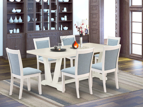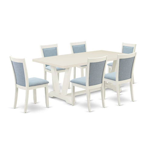 V027MIUE6-V 7 Piece Dining Set with Rectangular Table and V-Legs, Includes 6 Upholstered Chairs, Multi-Color, Linen Fabric