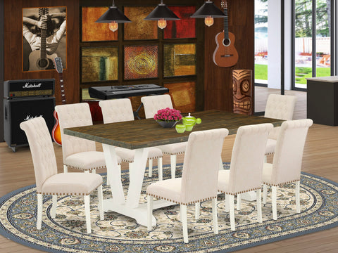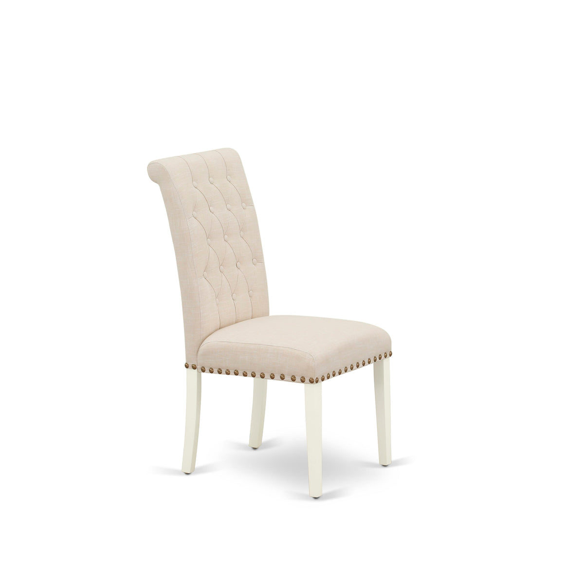 This rectangular table set includes 8 amazing Padded Parson Chairs and an outstanding rectangular table. This dining table is offered in an elegant Linen White finish. In addition, the Upholstered Dining chairs in a Light Beige linen fabric enhance the elegance of any kitchen or dining area. Our rectangular dining room table set delivers great durability because this kitchen table is built from high quality Asian Wood which can bear the weight of 300 Lbs. We have created these Parson dining room chairs and a rectangular dining table with the help of highly experienced carpenters, who generate a smooth and high-end finish to this dinette set. We try to offer innovative as well as easy to assemble products. Our high-quality kitchen set is perfect for you and your beautiful dining area as well as the kitchen area. You can use it for casual home parties or intimate gatherings. Keep enjoying East West modern furniture!
