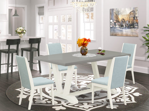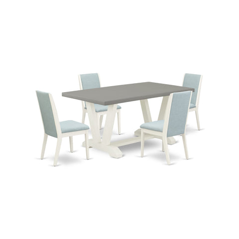 This dining set includes 4 wonderful Modern dining chairs and an outstanding rectangular table. This kitchen rectangular table is offered in an elegant Off-White finish. In addition, the Kitchen Parson Chairs in a Baby Blue linen fabric enhance the elegance of any kitchen or dining room. Our kitchen set delivers great durability because this dining table is built from high quality Asian Wood which can bear the weight of 300 Lbs. We have created these Upholstered Dining Chairs and kitchen rectangular table with the help of highly experienced carpenters, who generate a smooth and high-end finish to this dinette set. We try to offer innovative as well as easy to assemble products. Our high-quality dining room table set is perfect for you and your beautiful dining room as well as the kitchen area. You can use it for casual home parties or intimate gatherings. Keep enjoying East West modern furniture!