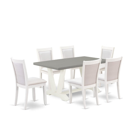 V096MW8AD-0 7-Piece Dining Ensemble with Stylish Table and Cream Linen Chairs for Classy Dining, 36x60 Inch Style, Multi-Color