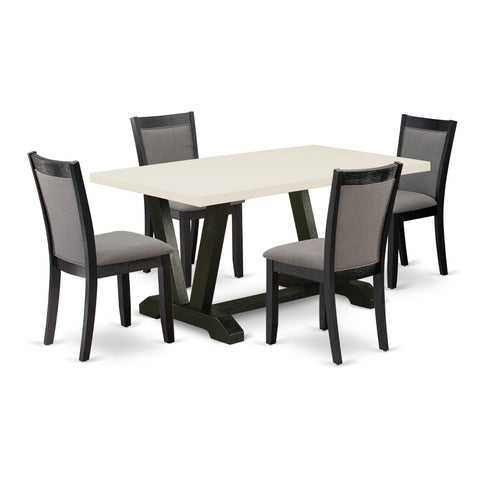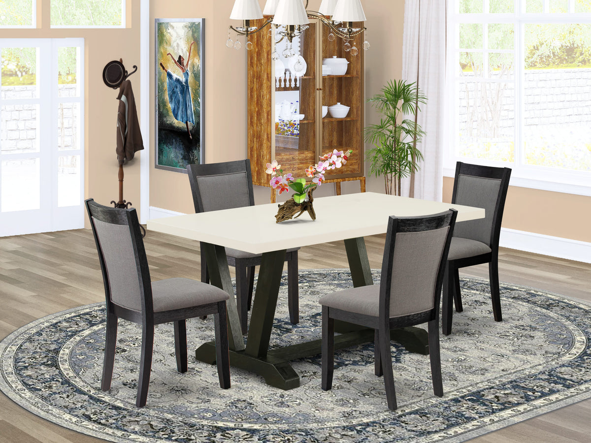 This 5 Piece dining room set includes a wooden dining table with 4 wood dining chairs to make your loved one's meals more comfortable and pleasant. The structure of this dining table set is created of high-quality rubber wood, which offers wonderful strength and stability. The mid century dining chairs are slightly and elegantly curved, expertly finished with the help of highly experienced carpenters. These modern dining chairs seat offers linen fabric that is smooth and has strong spring elasticity, offering the best comfortable contact experience. The seat of the wood dining chairs is wide enough to make your seating comfort. Linen Fabric dining chairs add stylish intrigue to your dining room. This dining set stands on a sturdy hardwood frame with solid legs and a contemporary Wire Brushed Black finish. The dining room table set has a rectangular Linen White tabletop with V-Style Legs. The matching color of the upholstered wooden dining chairs with the rectangular modern kitchen table brings a superb contrast in any dining area. This beautiful modern dining table set is easy to clean with a damp cloth and will always provide fresh appeal. The significance mentioning is that the installation process of our lavish modern dining set is not difficult and easy to operate. Each set comes conveniently flat packed with easy-to-follow instructions and all essential equipment included. You simply need to follow the steps in the manual to accomplish the assembly in a short time. You'll love our midcentury dining set quality, style, and affordability!