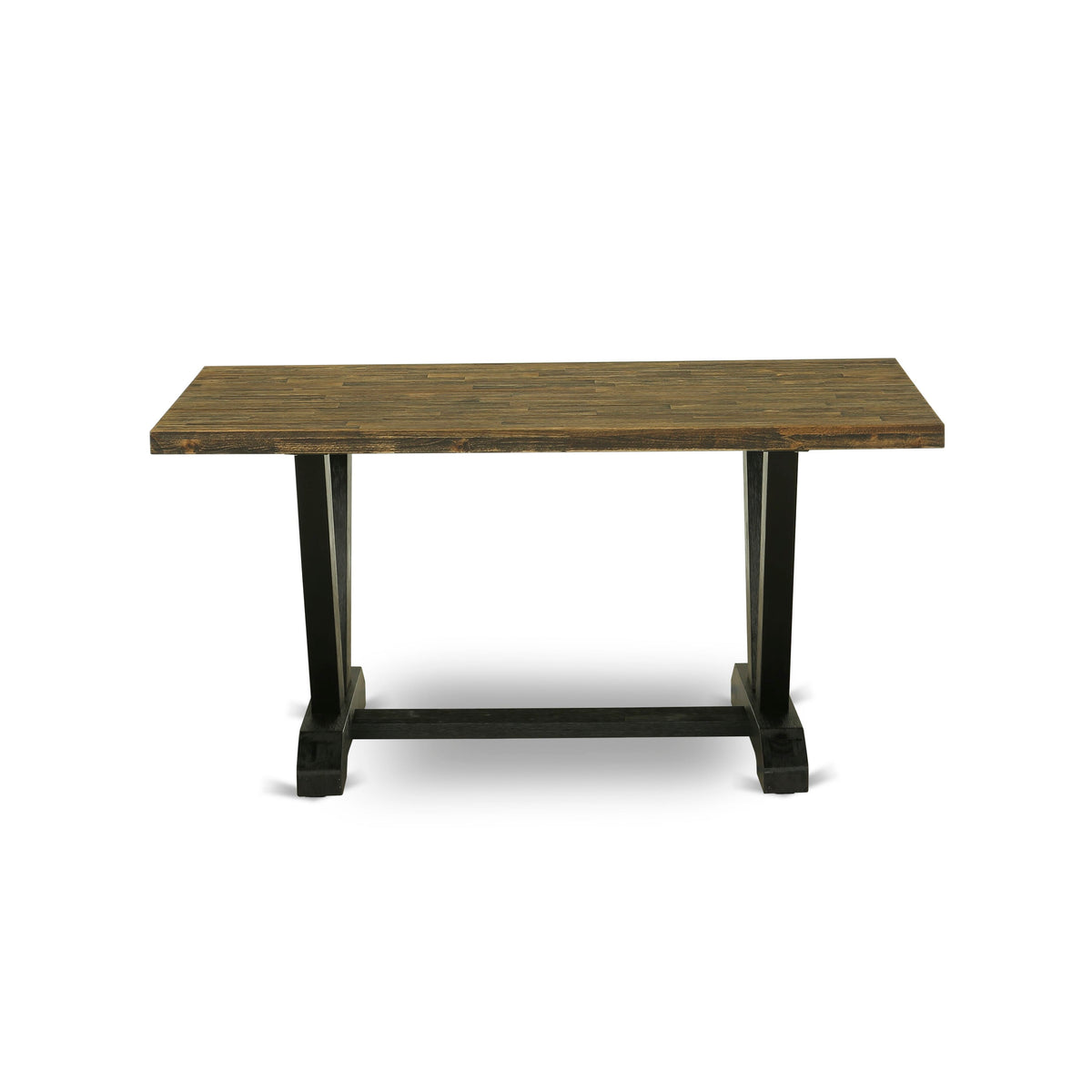 Nifty V676F81B7-Q Dining Ensemble V-Shaped Table & Four Blue Upholstered Linen Chairs Set