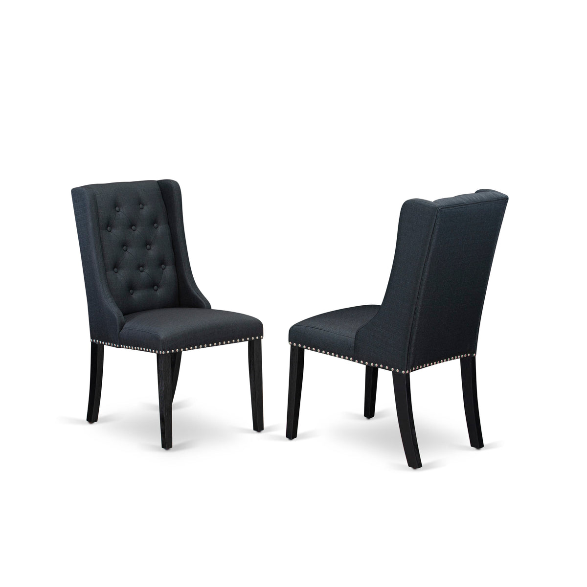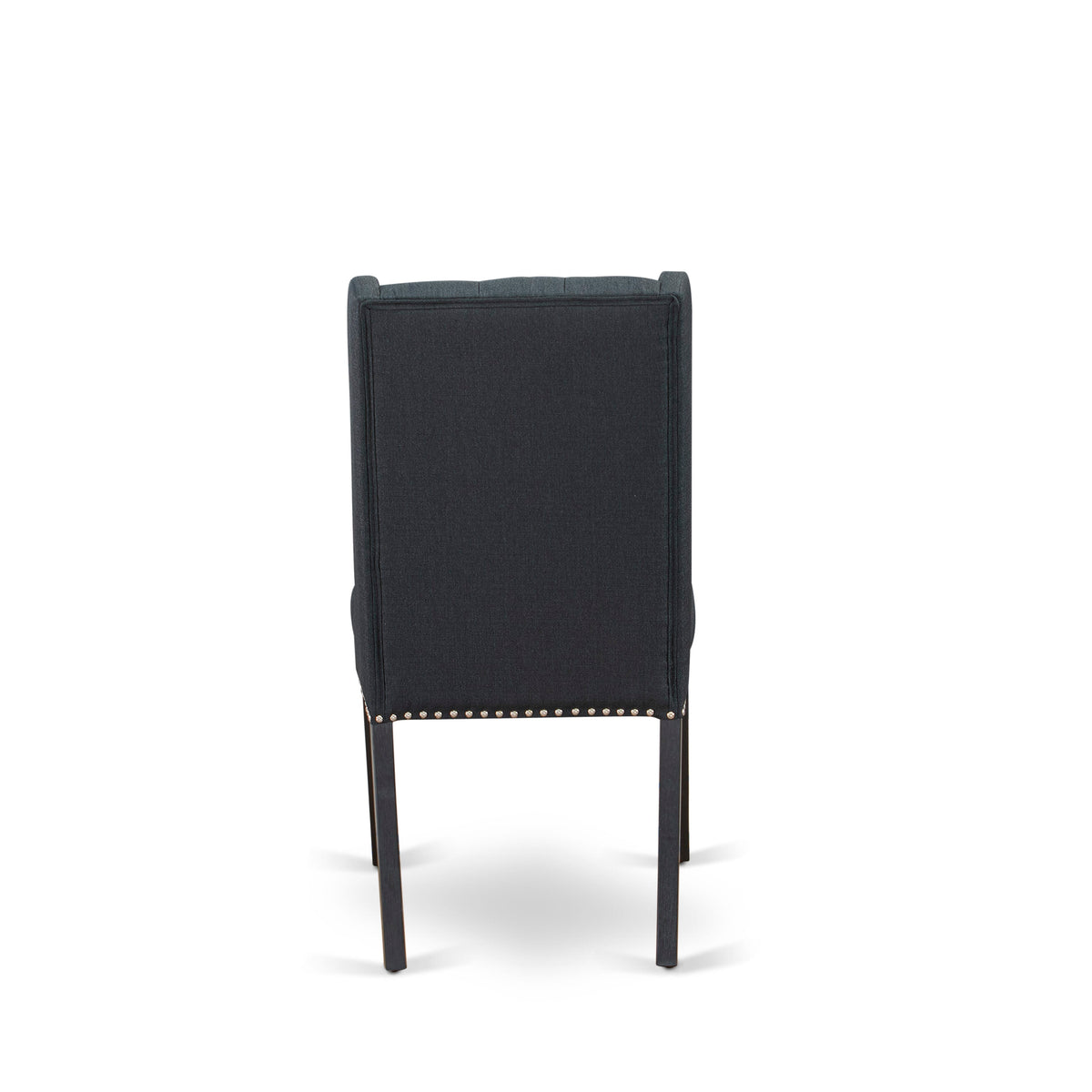 V677F2W10-D 9-Piece Dining Ensemble with V-Leg Table and 8 Black Upholstered Chairs, Multi-Hued, 40x72”