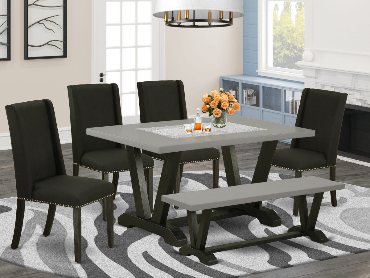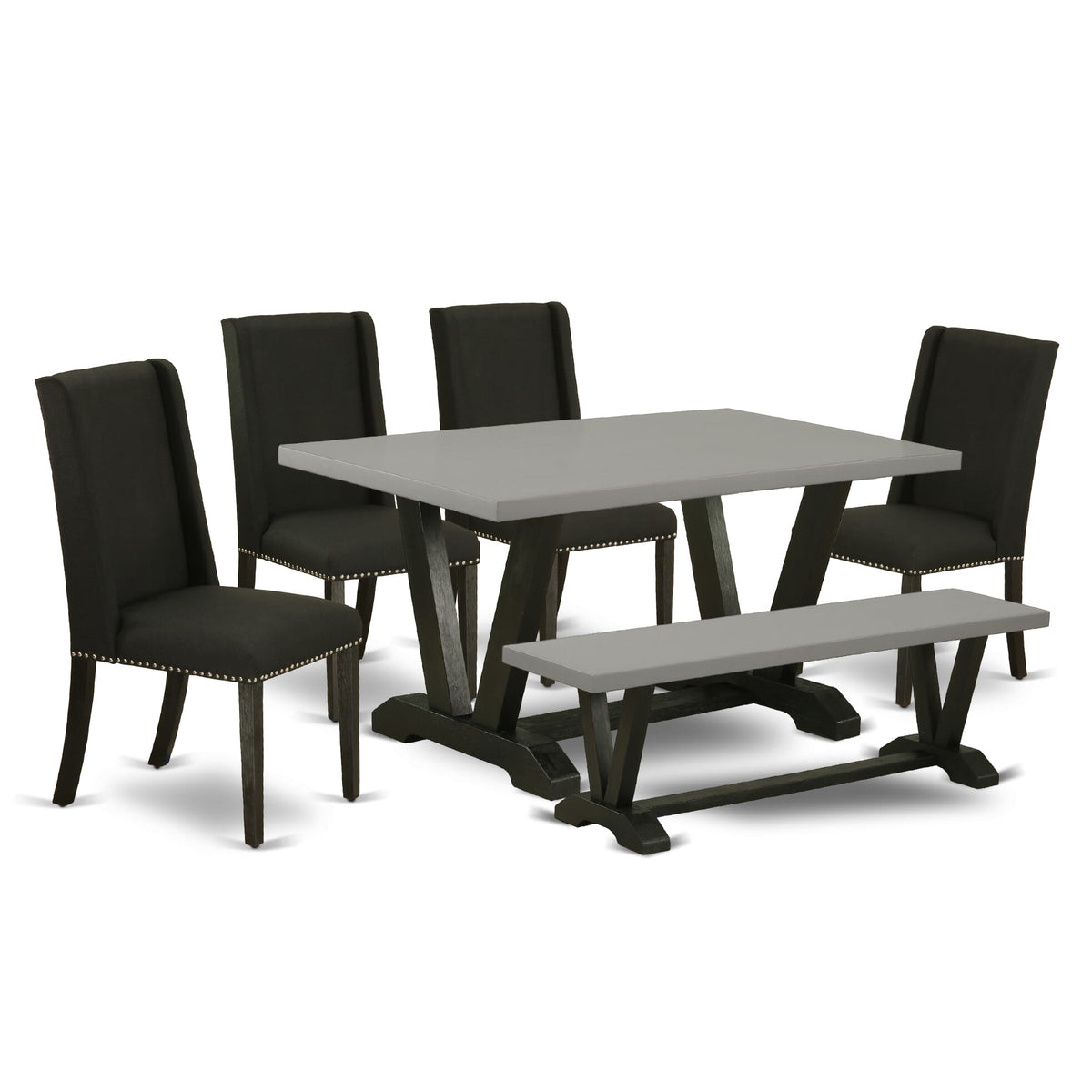This modern dining table set includes 4 wonderful Parson dining chairs, an awesome small bench, and a gorgeous dining room table. This kitchen table is offered in an elegant Wire Brushed Black finish. In addition, the Upholstered Dining Chairs in a Black linen fabric and awesome Cement Color dining bench top enhance the elegance of any kitchen or dining room. Our rectangular table set delivers great durability because this kitchen table and mid century modern bench are built from high quality Asian Wood which can bear the weight of 300 Lbs. We have created these Upholstered Dining Chairs and dining table, and indoor bench with the help of highly experienced carpenters, who generate a smooth and high-end finish to this dining set. We try to offer innovative as well as easy to assemble products. Our high-quality dining room set is perfect for you and your beautiful dining room as well as the kitchen area. You can use it for casual home parties or intimate gatherings. Keep enjoying East West modern furniture!