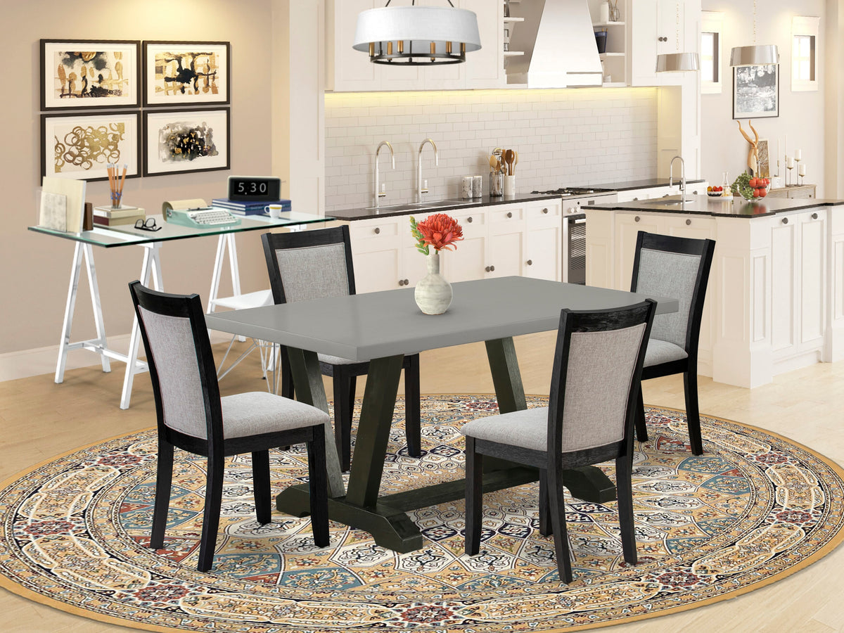 This 5 Piece dinner table set includes a wooden dining table with 4 dining room chairs to make your loved ones mealtime easier and pleasant. The structure of this modern dining table set is created of top quality rubber wood, which offers fantastic durability and stability. The dining chairs are slightly and stylishly curved, expertly finished with the help of highly skilled carpenters. These dining chairs seat offers linen fabric that is soft and has strong spring elasticity, offering the best comfortable contact experience. The seat of the wooden dining chairs is wide enough to make your seating comfortable. Linen Fabric kitchen chairs add stylish intrigue to your dining room. This dining set stands on a sturdy hardwood frame with solid legs and an innovative Wire Brushed Black finish. The dining table set has a rectangular Cement tabletop with V-Style Legs. The matching color of the padded dinning chairs with the rectangular kitchen table brings an excellent contrast in any kitchen area. This beautiful dining table set is easy to clean with a damp towel and will always provide fresh appeal. The significance mentioning is that the installation process of our magnificent dining table set is very simple and easy to operate. Each set comes conveniently flat packed with easy to follow instructions and all required equipment included. You only need to follow the steps in the manual to complete the assembly in a short time. You'll love our modern dining table set quality, style, and affordability!