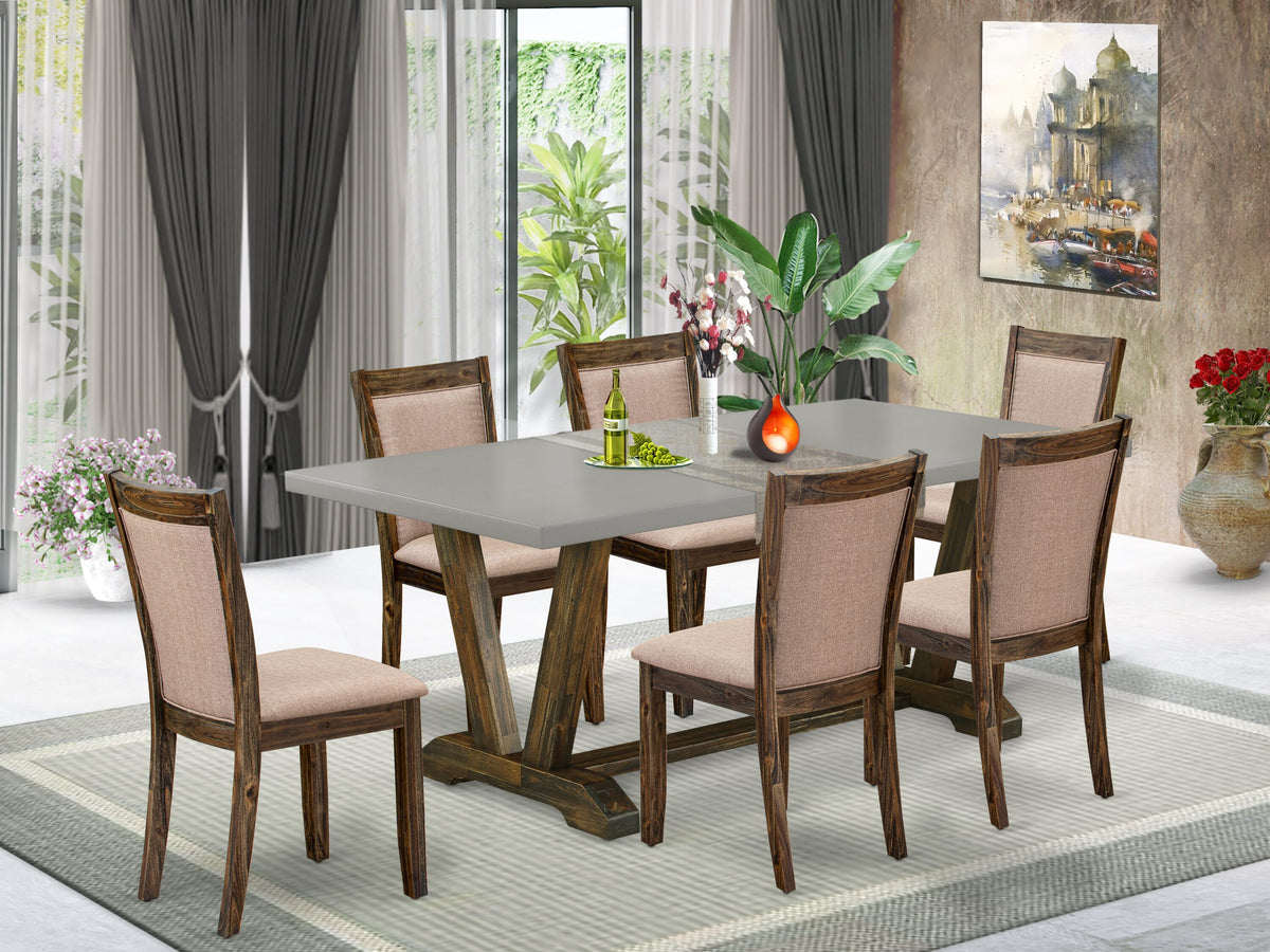 This 7-piece table set consists of 1 dinner table and 6 matching kitchen table chairs. The dining room set is made of fine RubberWood for high quality and endurance. A rectangular-shaped rustic kitchen table is manufactured in a sophisticated style with distinct aspects and linen fabric padded dinner chairs will attract everyone who comes to the dining room. The dinner table has V-style legs to offer maximum stability during dinner. The innovative and stylish design of the dining set easily blends in any home. The Padded seat of the rustic dining chairs is made of linen fabric that raises the dining table design. Our innovative dining set is quite simple to clean with a damp cloth and always offers an elegant appeal. The installation process of our luxurious dining room set is not difficult and straightforward to operate. Each kitchen table set comes conveniently with easy-to-follow instructions and all necessary equipment included. You simply need to follow the procedures in the manual to complete the installation in a short time.