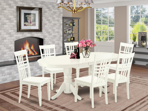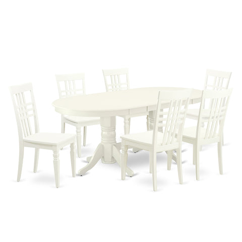 VALG7-84P-K Classic 7-Piece Dining Table Ensemble with Oval Expandable Table & 6 Chairs in Whisper White