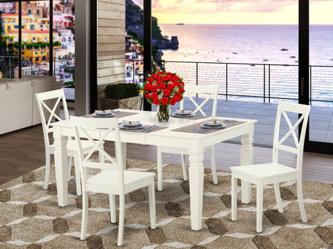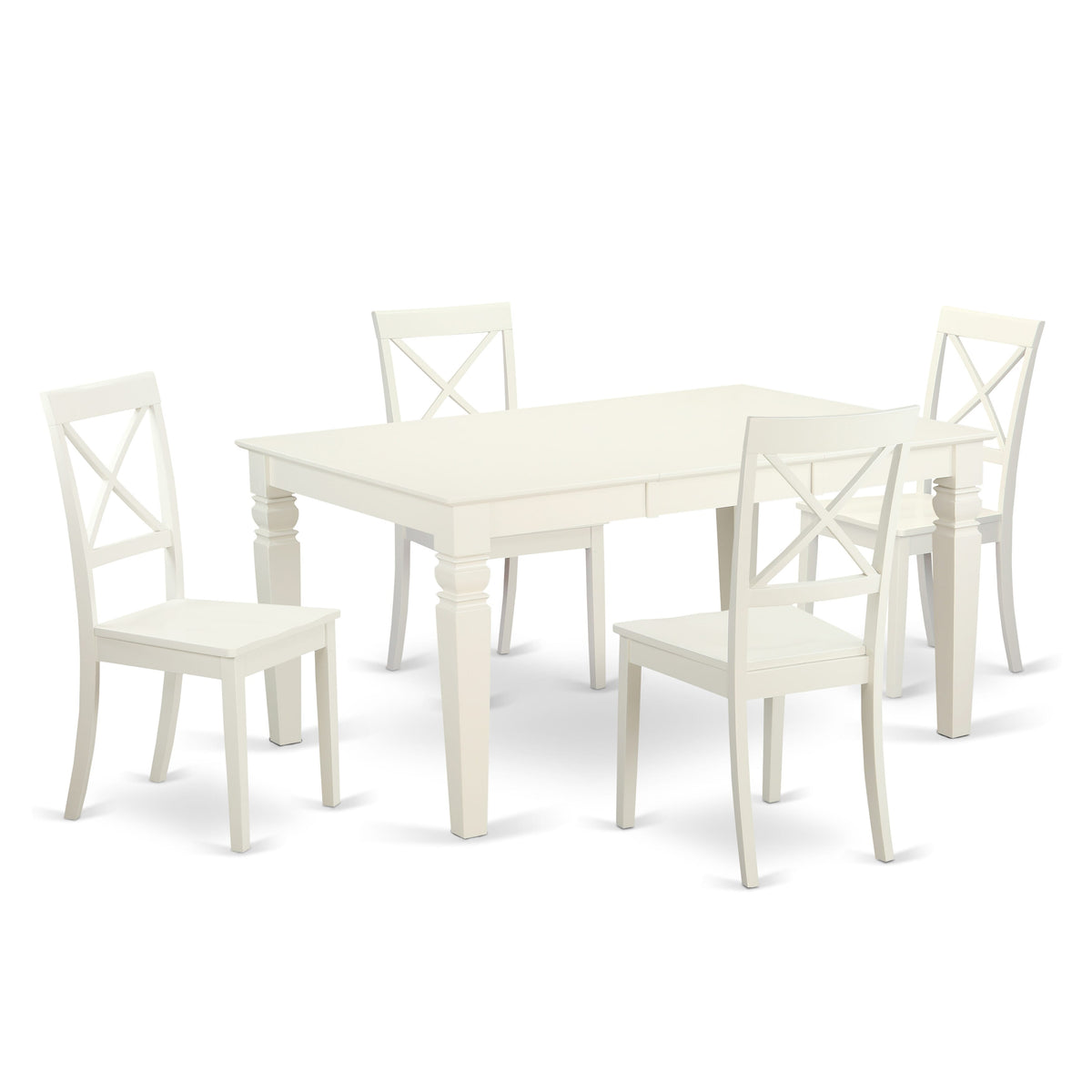 WEBO5-3P8-U 5-Piece Rectangular Dining Set with Extended Leaf & 4 Chairs, Linen White Finish, 42x60