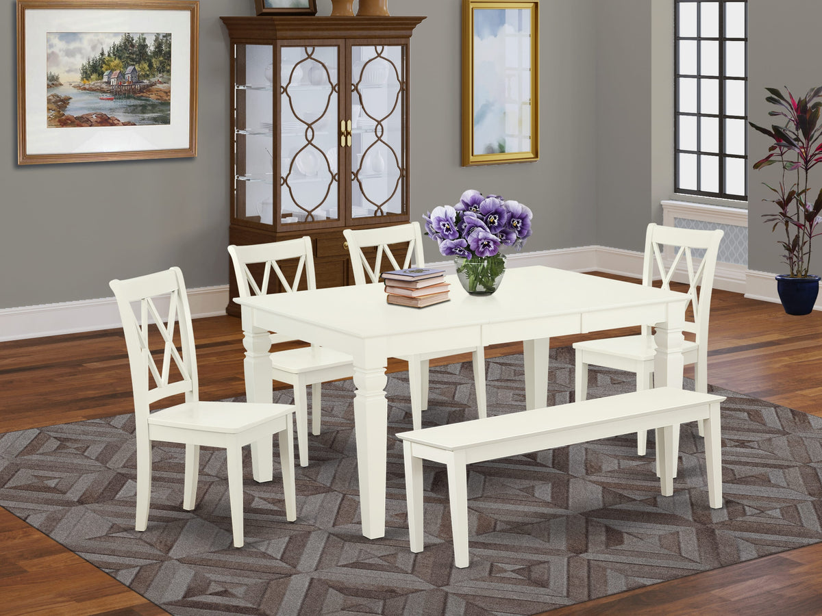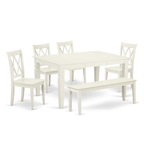 WECL6L-O5K-F 6pc Dining Set with Expanding Table & Bench, Linen White Finish
