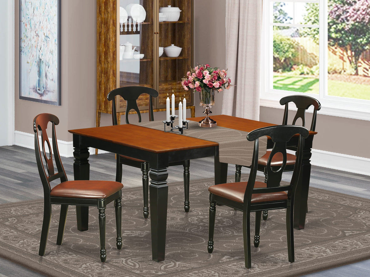 WEKE5-VKG-2U 5-Piece Dining Set with Expandable Leaf Table and Upholstered Seating, Classic Dual-Tone Black & Cherry