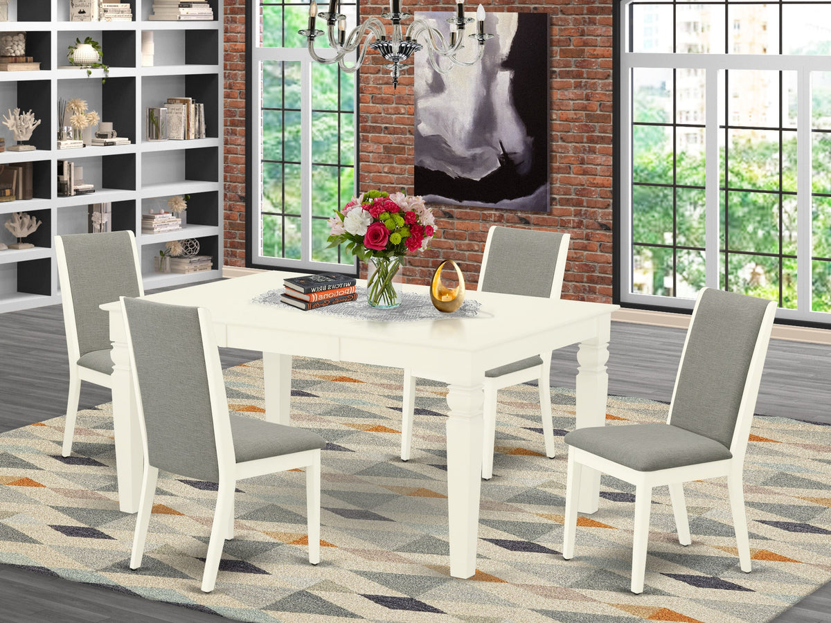 Stylish Dining Set with Butterfly Leaf - WELA5-6D4-X9, 5-Piece, Shitake Linen Upholstery & 42x60 Table