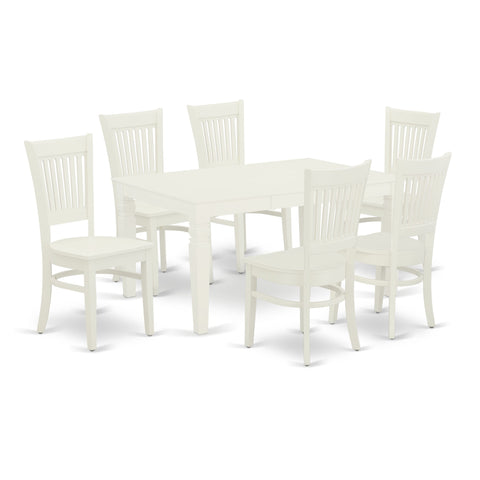 Its dining set includes 6 eye-catching dining chairs and an amazing 4 legs rectangle table. The kitchen dinette set gives a Linen White solid wood dining table and a fantastic Linen White wood dining chair that will raise the beauty of your dining area. This rectangular table is created from high-quality rubberwood. These wooden dining chairs have been created from superior quality wood that can Endurance to 300lbs weight. This wood dinette set is colored with a good quality Linen White finish. You can clean this dining room table set easily with any furniture clearance. This mid century dining table set assembles easily because of its simple design. You can put together this wooden dining table set from one place to another easily. The modern dining table set is one of the most important pieces of furniture in your house. It not only becomes the place to eat meals, but it's where you end up working on vegetable cuts and spending time with family and friends. You can also use it for casual home parties. That's why it's important to find a modern dinette set that fits your personality and uses the space wisely. The options are endless, so picking what works best for you is important. If you're looking to bring a contemporary look to your kitchen or dining room, this Rectangular dinette set might be the perfect selection. Bring a rustic, stylish look to your dining room with this mid century dining table set that seat 6 people around the rectangle table. Just because you have a small area or for your table doesn't mean you have to give up on quality or look. Keep enjoying with East West furniture!