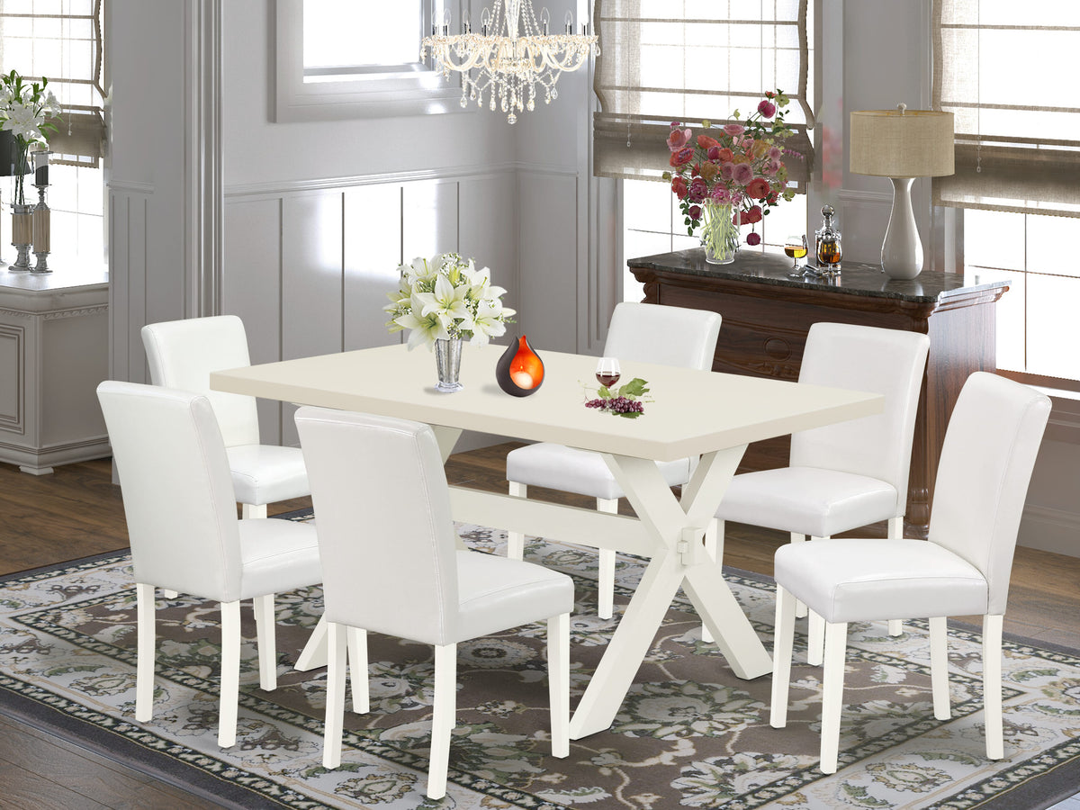 X026A7ZKV-8 7-Piece Dining Bundle with X-Leg Table & 6 Faux Leather Chairs Set, 36x60 Multi-Color