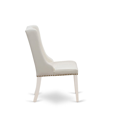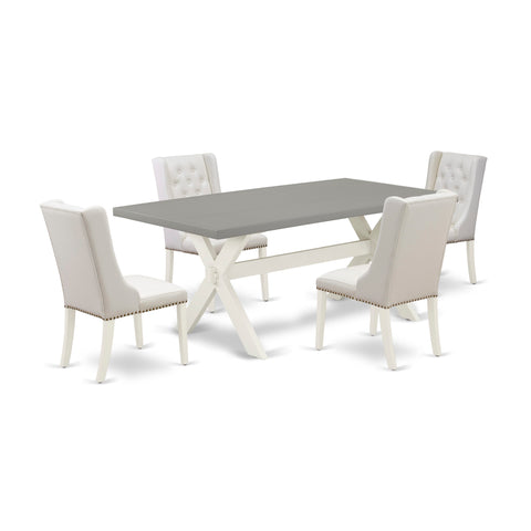 This gorgeous 5-Pc dinette set is going to make your family mealtime more comfortable and pleasant! Our 5 Pc dining room set contains 4 kitchen chairs and 1 wooden table. These Button tufted chairs' back are slightly and elegantly curved, expertly finished with Pu Leather soft upholstery. Our kitchen chair seat is created from Pu Leather that offers a wonderful sitting experience. This dining table has a rectangular Cement table top and Wire Brushed Linen White X-Style Legs. These nailhead dining room chairs have White Pu Leather and Wire Brushed Linen White solid wood chair legs. These dining room chairs stand on a sturdy hardwood frame with solid legs and a contemporary Linen White finish. Designed with easy and fast assembly in mind, each set comes conveniently flat packed with easy to follow instructions and all necessary tools included. This contemporary, budget-friendly, durable and comfortable dining room set furniture can be a great choice for you and your family if you enjoy the dining experience. Enjoy with East West Furniture!