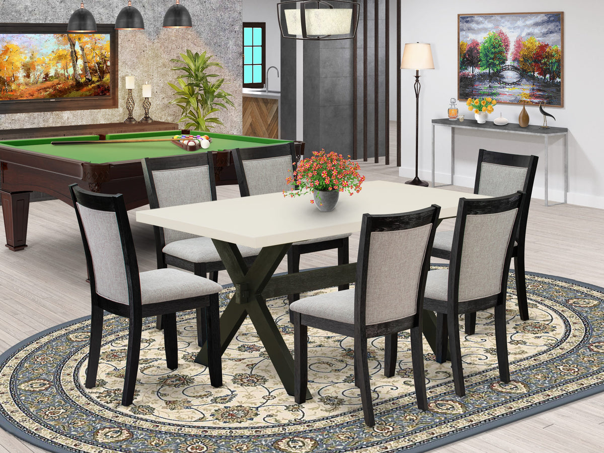 This 7-piece table set includes a dining table with 6 mid century dining chairs to make your friends and family mealtime easier and more pleasant. The frame of this kitchen table set is created of top-quality Asian wood, which offers wonderful durability and stability. The mid century dining chairs are slightly and stylishly curved, expertly finished with the help of highly experienced craftsmen. These wood dining chairs seat offers linen fabric that is smooth and has strong spring elasticity, offering the best comfortable contact experience. The seat of the parson chairs is wide enough to make your seating comfort. Linen Fabric mid-century dining chairs add stylish intrigue to your dining room. This dining set stands on a sturdy hardwood frame with solid legs and an innovative Wire Brushed Black finish. The dinner table set has a rectangular Linen White tabletop with X-Style Legs. The matching color of the padded dining chairs with the rectangular mid century dining table brings an excellent contrast in any kitchen area. This beautiful dining set is easy to clean with a damp cloth and will always offer fresh appeal. The worth mentioning is that the installation process of our magnificent kitchen table set is very simple and easy to operate. Each set comes conveniently flat packed with easy-to-follow instructions and all essential equipment included. You simply need to follow the steps in the manual to complete the assembly in a short time. You'll love our kitchen table set quality, style, and affordability!