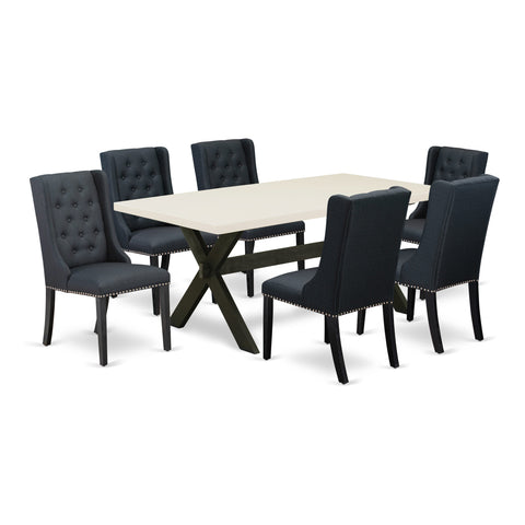 X627F9PH2-H - Contemporary 7-Piece Dining Ensemble with X-Style Table & 6 Chairs, 40x72
