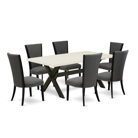 X627V4FI4-G Elegant 7Pc Dining Ensemble - Striking Rectangular Table & Luxuriously Upholstered Seats in Black & White Hues