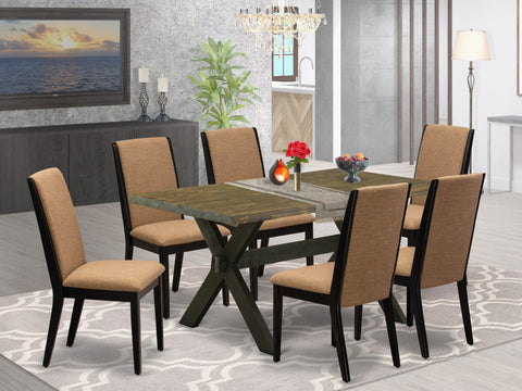 X676L7JGV-L Elegant 7-Piece Dining Room Arrangement with Rectangular Table, X-Legs Finish, and Six Upholstered Chairs