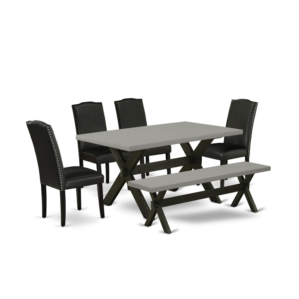 X696EJMSX-0 6Pc Set 36x60 Rectangle Table with Parson Seats & Bench in Black & Cement Brush Finish